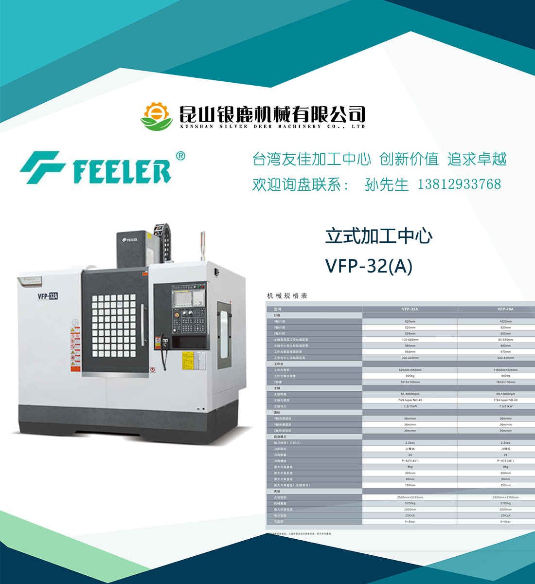 友嘉VFP-40A2線1硬1米立加一級(jí)代理。臺(tái)灣友嘉VFP-40A立加在老款基礎(chǔ)上進(jìn)行了升級(jí)、立柱加大加寬為A字結(jié)構(gòu)、同時(shí)保持發(fā)那科a電機(jī)使用、搭配1包系統(tǒng)、在力道上以及拐角加工中能夠獲得比較好的加工效果。X、Y軸采用線軌,Z軸為硬軌,中和了剛性和速度,專業(yè)的技術(shù)設(shè)計(jì)保證了,長(zhǎng)時(shí)間使用主軸頭不會(huì)變形彎曲。主軸采用浮動(dòng)打刀設(shè)計(jì),保護(hù)主軸換刀不受沖擊、延長(zhǎng)了主軸軸承使用壽命及保障了主軸精度!在一般產(chǎn)品加工中可以獲得較好的加工效果。如果選配升級(jí)安裝模具包,亦可進(jìn)行模具高速高精加工。是一款綜合性能比較好的加工中心。故障率低、使用皮實(shí)可靠!圖片外形和VFP-32A幾乎一致、僅供參考!如果需要可以預(yù)約工廠現(xiàn)場(chǎng)看設(shè)備。