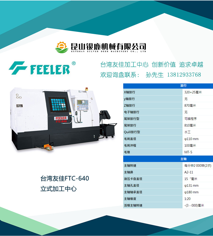 臺(tái)灣友嘉FTC-640車床,采用整體斜背車床、剛性好;A2-11主軸鼻端、主軸配2段式變速齒輪箱傳動(dòng)、主軸轉(zhuǎn)速2000rpm、主軸功率22/26KW;15寸卡盤、棒材通孔直徑117.5mm;配可程式尾座;最大切削直徑640mm,特別適合大型零件加工,例如鋁合金輪轂等。