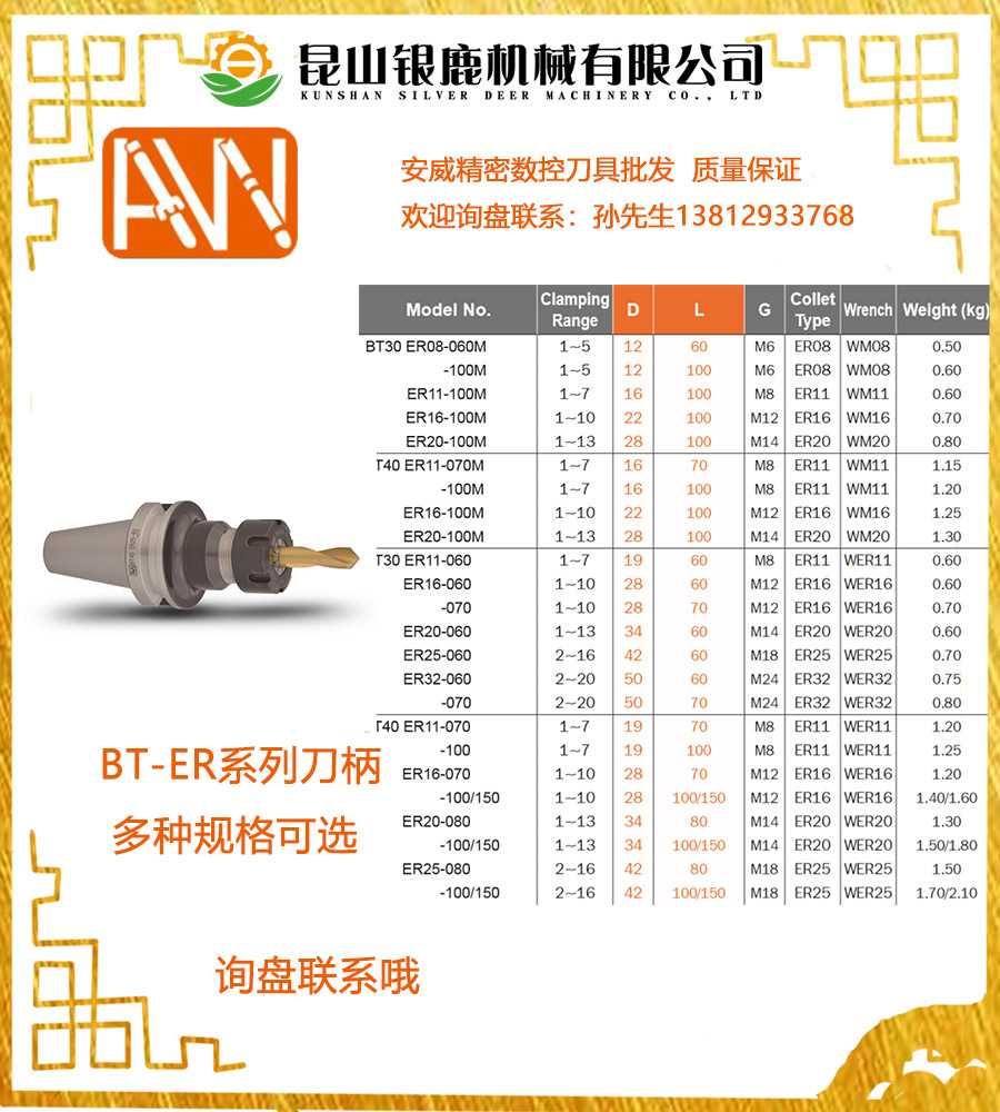 臺灣安威BT30/40-ER25-60/80/100加工中心刀柄優(yōu)質(zhì)代理