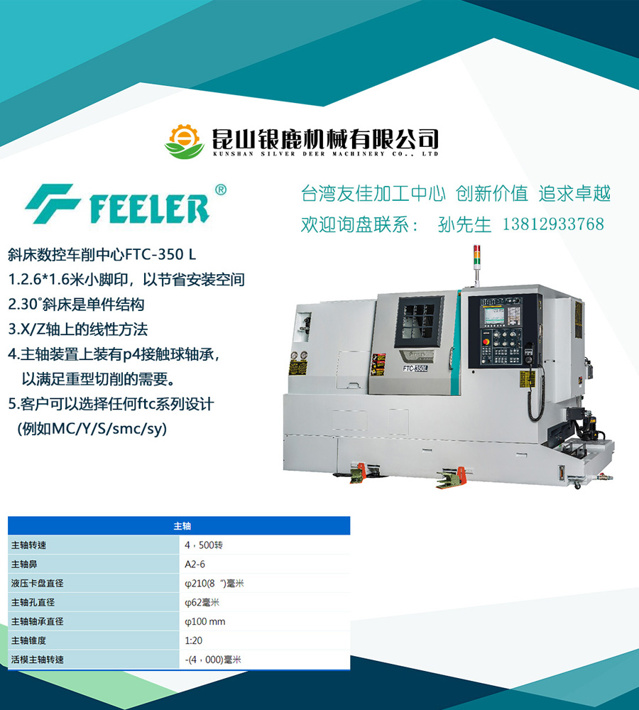 臺灣友嘉FTC-350L斜床身8寸卡盤數(shù)控車床一級代理,采用30度斜床身一體式鑄件設(shè)計(jì),導(dǎo)軌跨距大,剛性好,精度穩(wěn)定。標(biāo)配發(fā)那科系統(tǒng),a電機(jī)。詳細(xì)情況歡迎垂詢!