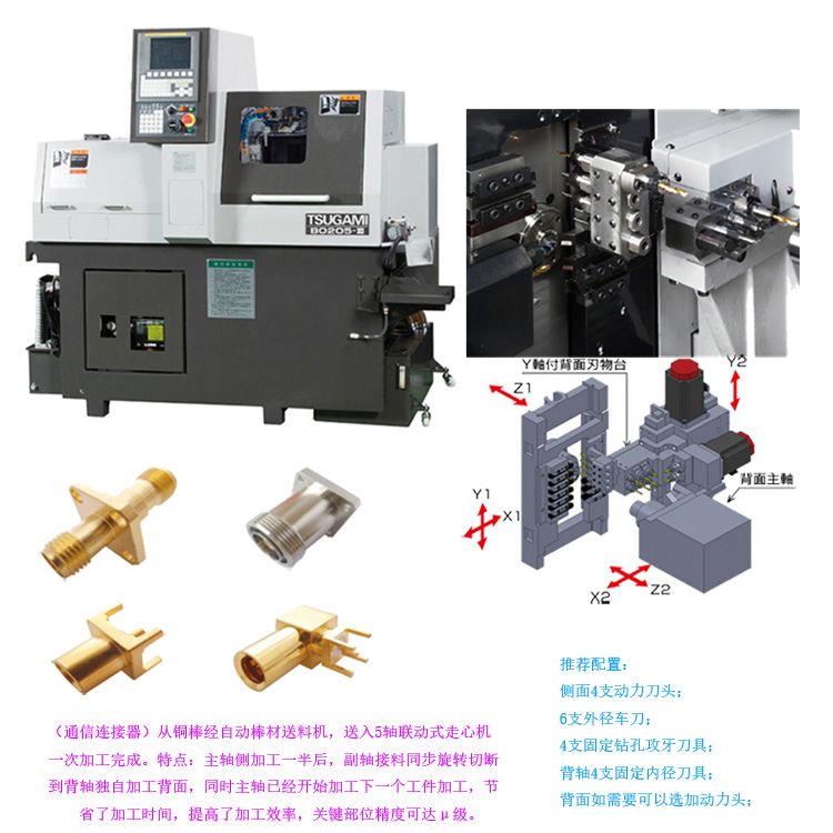 通信五金,光學五金高速高精加工走心機銷售,專業(yè)提供津上走心機加工方案及交鑰匙工程。例如高頻天線、探針等細微小軸加工、需要車銑復合加工精密小零件,以及光學五金鏡筒等零件一次送料自動棒材加工方案整合提供,亦可提供交鑰匙工程服務。具體視加工產品會有專門對策,如果你在找電子通信方面的五金加工設備,請及時與我們聯(lián)系,我們將第一時間安排拜訪、推動產品落地生產。